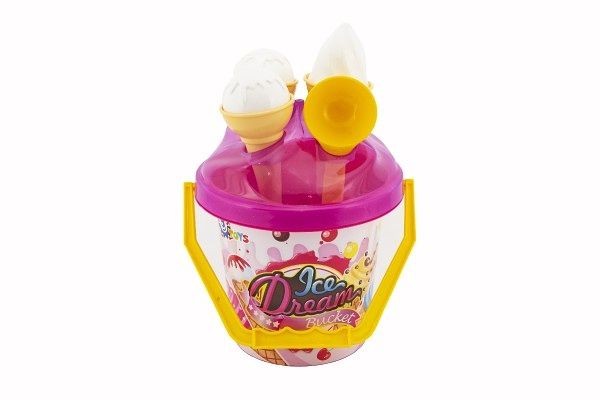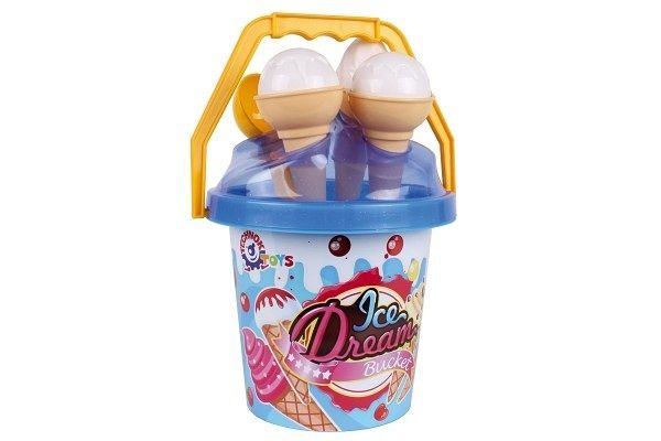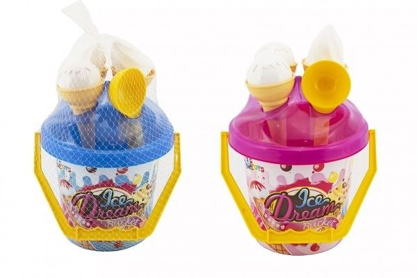 Hurá na pískoviště! Aby na něm byla dobrá zábava, nesmí tam chybět hračky na písek, které patří nepochybně mezi nejoblíbenější venkovní hračky. Sada obsahuje kyblíček, naběračku na zmrzlinu a bábovky v podobě zmrzlinových kornoutů a kopečků. Sada na písek je vyrobena z kvalitního a odolného plastu. Baleno v síťce.