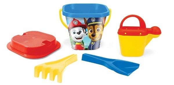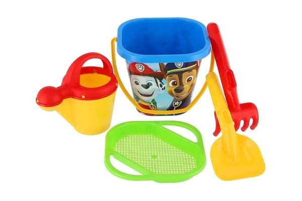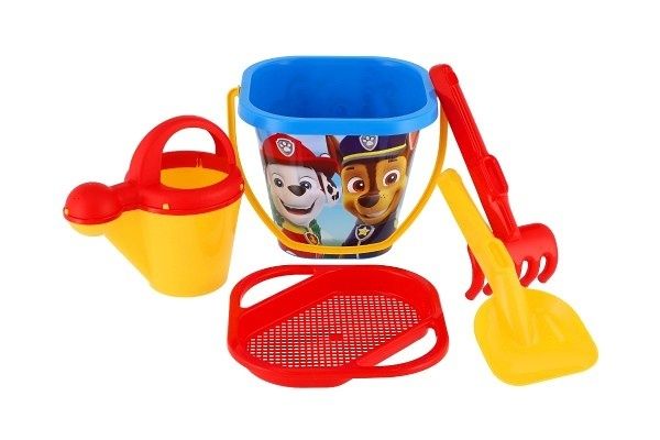 Sada na písek s motivem Tlapkové patroly si zamilujete! Hračky na písek využije na dovolené u moře, na dětském hřišti nebo na zahradě celá rodina. Sada obsahuje obsahující kyblík, formičku, hrabičky s lopatkou, konvičku a sítko.