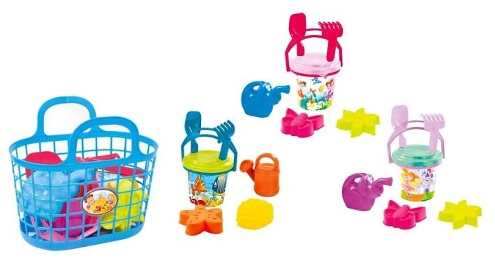 sítko, lopatičku, hrabičky, dvě bábovky, konvičku. Motivy – princezny,