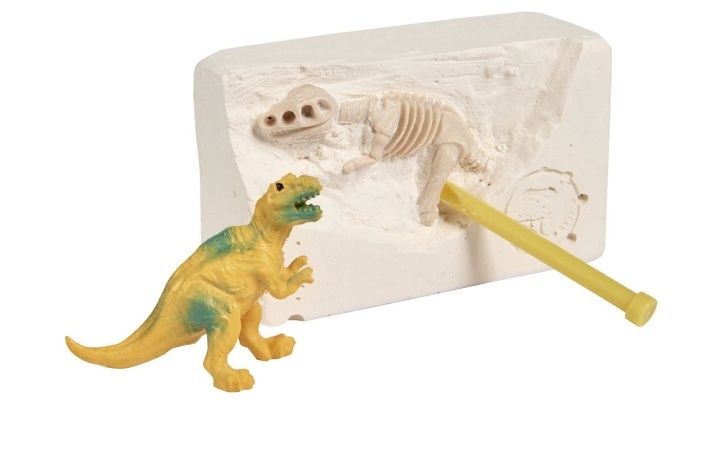Sada na vykopávání kostry dinosaura, 12 různých druhů. Součástí je nářadí a figurka dinosaura. Velikost 6-7 cm. Baleno v displeji po 12 ks.