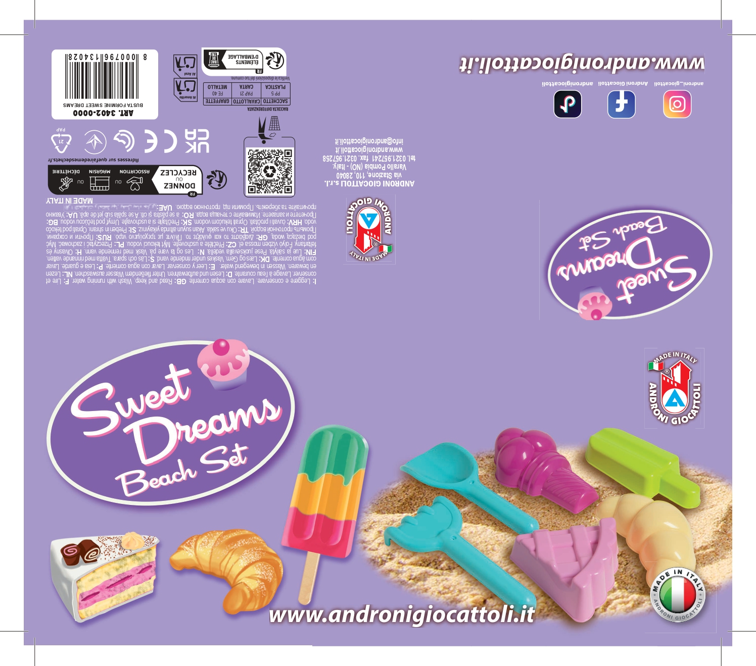 Sada na výrobu cukrovinel obsahuje bábovku dort, zmrzlinu,nanuk, croisant, lopatku a hrabičky. Vyrobeno z kvalitního plastu v Itálii.
