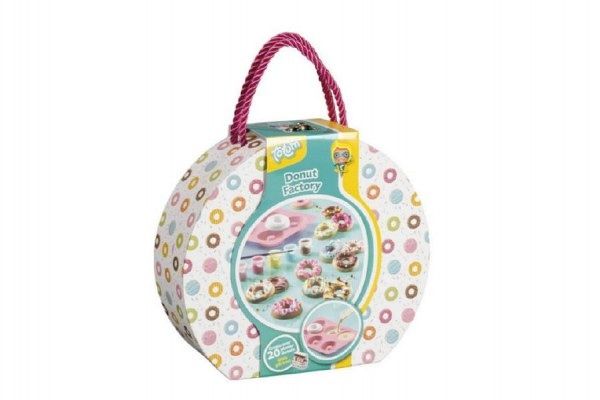 Sada na výrobu donutů "Továrna na donuty" hmota s doplňky v kartonovém kufříku 21,5x19,5x7