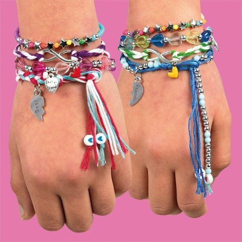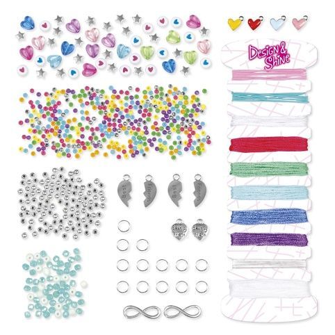 Sada na výrobu náramků přátelství- tato sada je ideální pro rozvoj dětské kreativity a jemné motoriky. Umožňuje dětem vytvořit si vlastní, originální šperky, kterými se mohou pochlubit. Obsahuje – různé druhy korálků -lesklé, třpytivé a barevné, šňůrky/lanka -materiál pro navlékání náramků, přívěsky – speciální ozdobné doplňky pro finální dotvoření.