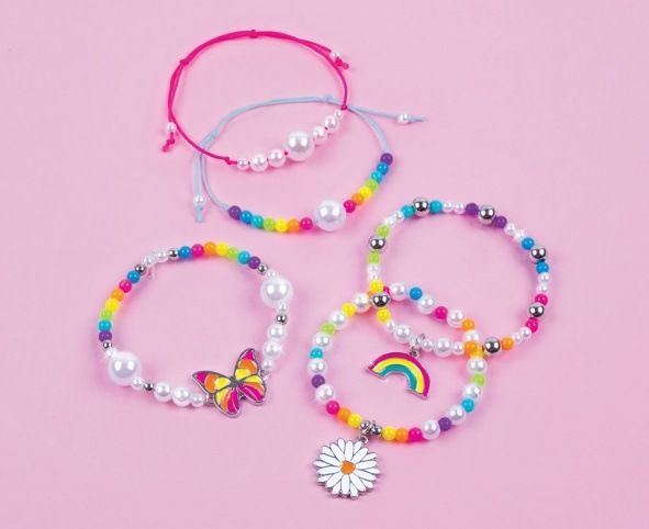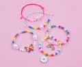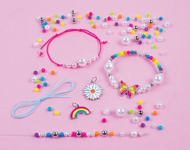 Sada obsahuje komponenty na výrobu pěti náramků. Oživte svůj svět kreativity a vyrobte si náramky dle vlastní představy. Sada obsahuje: 2 barevné šňůrky (0,6 m) a čirou elastickou šňůrku (1,5m), barevné korálky (156 ks), perličky a 3 přívěšky. Baleno v kr