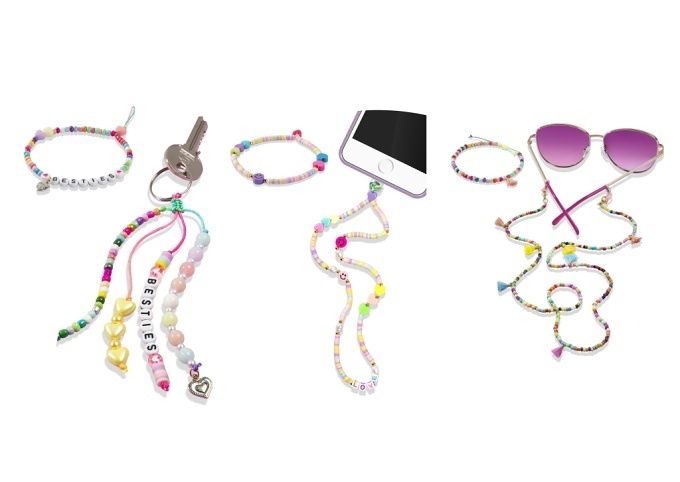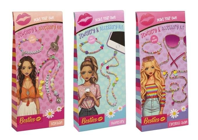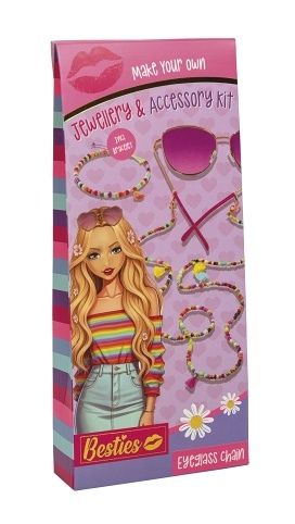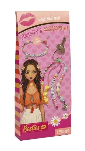 Kreativní sada MYO (Make Your Own) pro malé parádnice, která obsahuje vše potřebné k vytvoření vlastních stylových doplňků. Ideální pro rozvoj zručnosti a fantazie!Sada Besties je skvělou zábavou, při které si děti mohou navrhnout originální šperky a klíčenky a pochlubit se jimi kamarádkám, nebo je darovat jako dárek z lásky.Vytvořte si – klíčenku, přívěsek na mobil nebo náramek a šňůrku na brýle. Sada obsahuje – barevné korálky, korálky s písmenky, přívěsky, kroužek, šňůrku/řetízek.