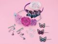 Vyrobte si úžasné doplňky do vlasů, které vás rozzáří a podtrhnou váš styl. Květinová korunka, nebo čelenka s motýly jsou hlavní součástí této sady. Balení obsahuje 3 barevné voskované šňůrky (3 m celkem), čirou elastickou šňůrku (1,5 m), 3 pinetky, 2 vla