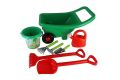 Kompletní zahradní sada pro malé zahradníky. Tato barevná plastová sada přináší dětem radost z práce na zahradě i zábavy na písku. Obsahuje kolečko, kbelík, konvičku a další doplňky pro hravé i „pracovní“ chvíle pod širým nebem. Perfektní pro rozvoj dětské motoriky, kreativity a lásky k přírodě.