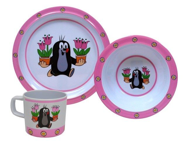 3dílná dárková sada dětského nádobí s motivem Krtečka a tulipánů. Sada obsahuje talířek pr.21cm, misku pr.16cm a hrneček s jedním uchem v.6,5cm. Materiál 100% melamin bez ftalátů. Nepoužívat v mikrovlnné troubě! Možno mýt v myčce.