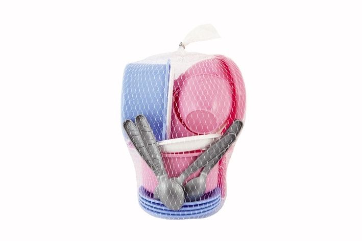 Sada nádobí plast barevné 18ks v síťce 12m+