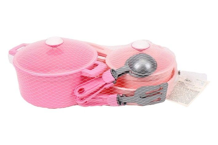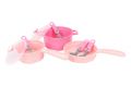 Sada nádobí s doplňky plast růžová v síťce 20x30x10cm 18m+