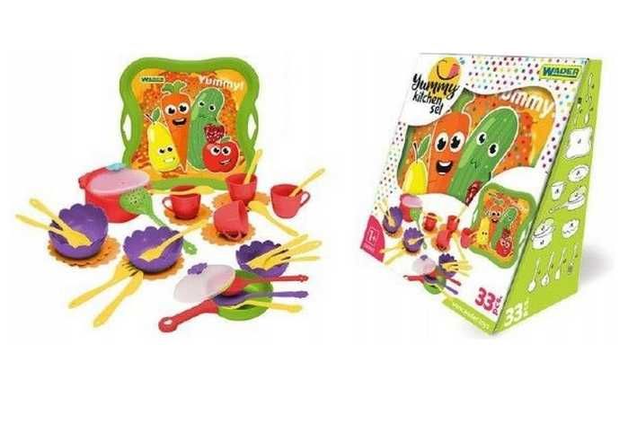 Sada nádobí s podnosem - 33ks z plastu v krabici.