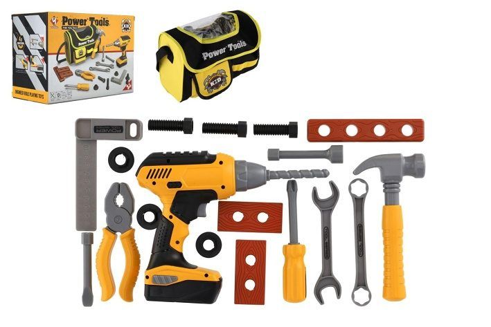 Sada nářadí plast s aku vrtačkou 16x17cm na baterie se zvukem s brašnou v krabici 24x17,5x