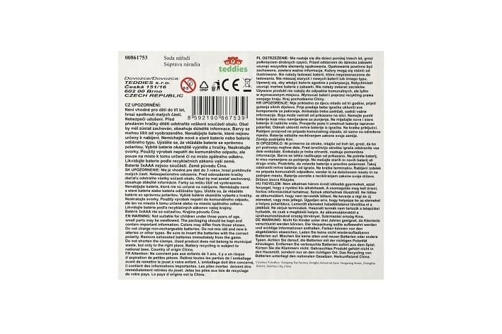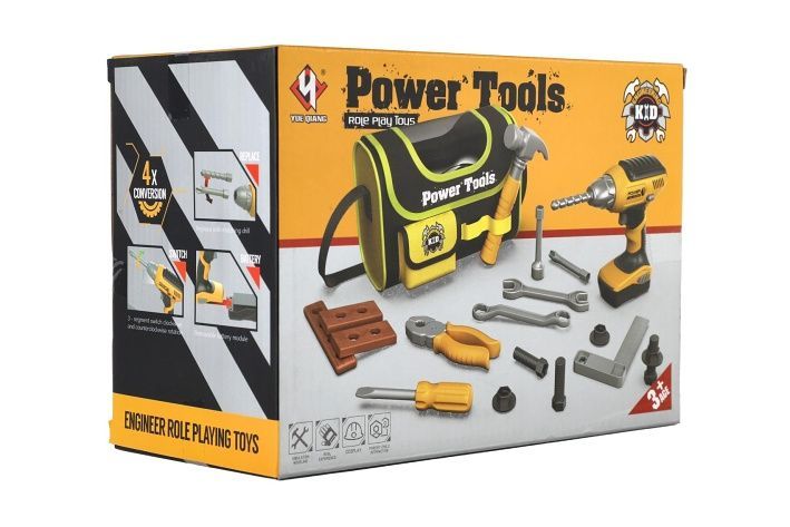 Tato dětská sada nářadí s vrtačkou je ideálním dárkem pro malé kutily, kteří rádi napodobují práci dospělých. Sada obsahuje vše potřebné pro malé opraváře v praktické tašce přes rameno. Hračka je vybavena zvukovými efekty a napájena packem na baterie (3xAAA, nejsou součástí balení), kompatibilní s dalšími nástroji stejné značky.