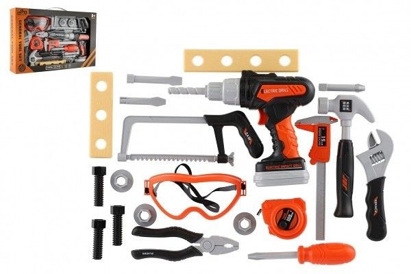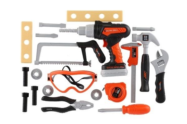 Chceš pomáhat tatínkovi při opravách doma a chybí ti ve tvé výbavě vrtačka? Nevadí! S tímto setem ti půjde vše od ruky a třeba dostaneš od maminky sladkou odměnu za odvedenou práci! Aku vrtačka se po zmáčknutí tlačítka točí a má vyměnitelné vruty. Vydává reálný zvuk. Sada obsahuje spoustu různých druhů nářadí.