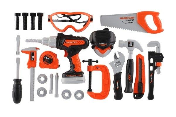 Chceš pomáhat tatínkovi při opravách doma a chybí ti ve tvé výbavě vrtačka? Nevadí! S tímto setem ti půjde vše od ruky a třeba dostaneš od maminky sladkou odměnu za odvedenou práci! Aku vrtačka se po zmáčknutí tlačítka točí a má vyměnitelné vruty. Vydává reálný zvuk. Sada obsahuje spoustu různých druhů nářadí.