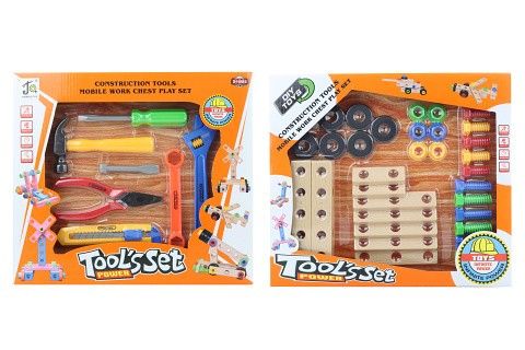 Plastová sada nářadí obsahuje kladivo, kleště, šroubovák, klíč, nůž, šroubky a další doplňky. Rozměry balení cca 34 x 30 x 7,5 cm. Věk 3+