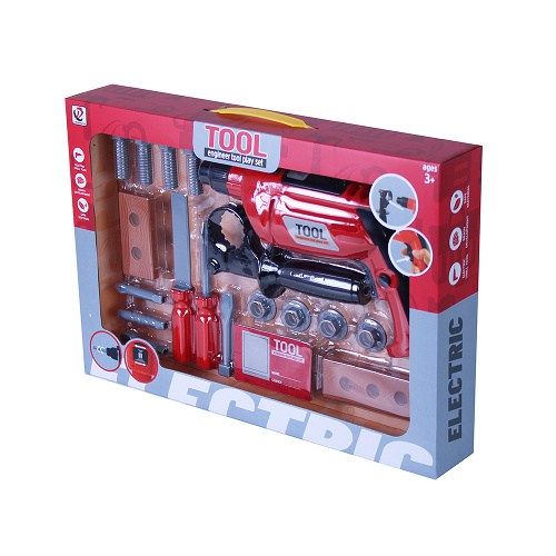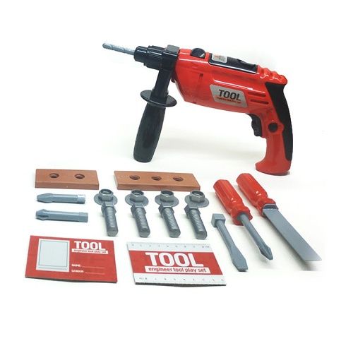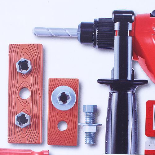 Velká sada s vrtačkou pro malé kutily. Součástí této sady je taky spousta skvělého příslušenství jako třeba šroubovák nebo různé šrouby. Vrtačka funguje na 2 x AA baterie, které nejsou součástí balení.