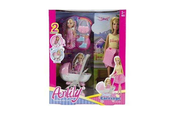 Sada panenka Anlily kloubová s holčičkou a kočárkem + doplňky plast v krabici 27x34x9cm