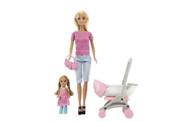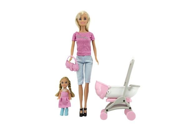 Kloubová panenka s holčičkou, kočárkem a doplňky. Vhodné od 3 let.