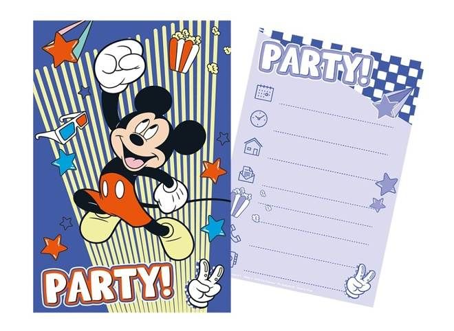 Sada párty pozvánek obsahující 5 krásných pozvánek a 5 obálek na zabalení pozvánek s motivem Mickey Mouse, abys mohl/a pozvat všechny své kamarády a kamarádky na svou úžasnou párty 15x10 cm