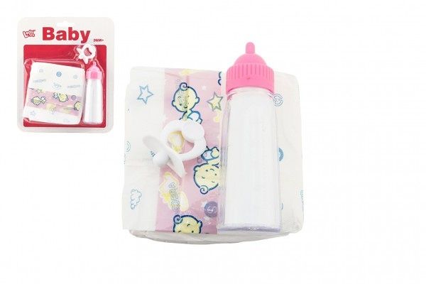 Sada péče o miminko obsahuje vše, co malá maminka potřebuje k péči o miminko. V balení najdete kojeneckou lahvičku, nočník, dudlík a plenu.