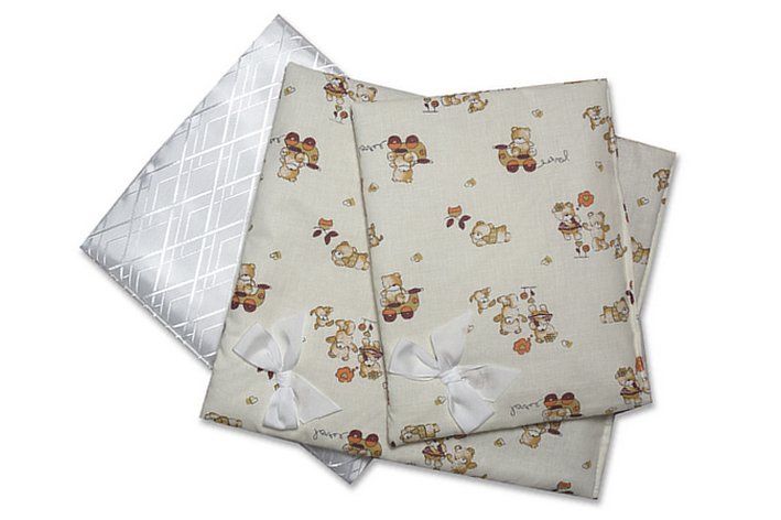 Sada peřinka + polštářek + podložka / béžová medvídci