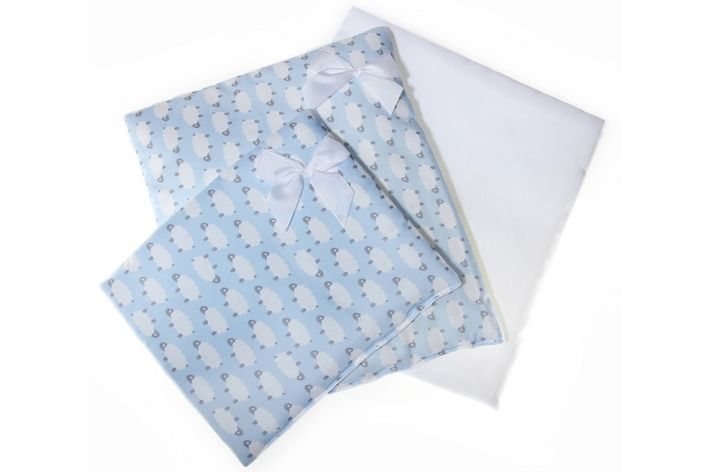Sada peřinka + polštářek + podložka / světle modrá ovečka