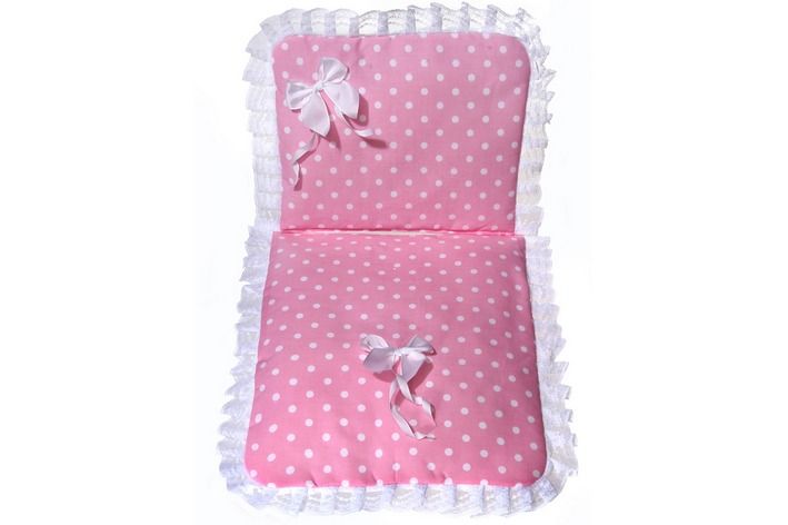 Sada peřinka + polštářek. Peřinka do postýlky nebo kolébky nesmí chybět v žádné výbavě pro panenku! Tato praktická souprava obsahuje polštářek,peřinku, zdobená silonovou krajkou a mašličkami.