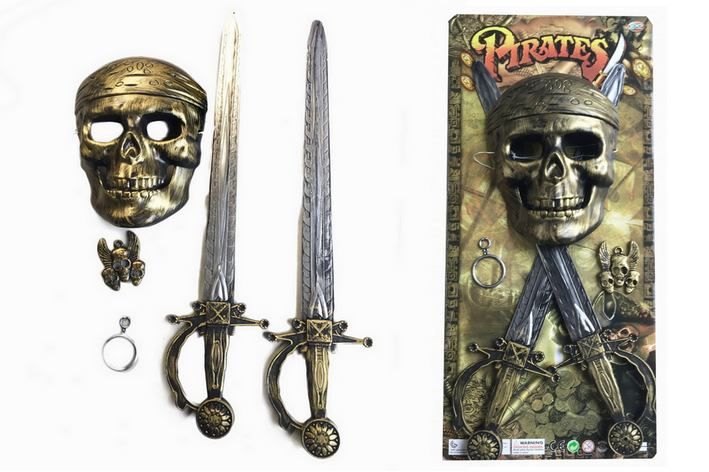 Exkluzivní sada pro všechny malé piráty! Pirátská sada obsahuje dva pirátské meče, masku a další doplňky. Tyto vychytávky jsou ideální nejen ke kostýmu i jen tak na hraní.
