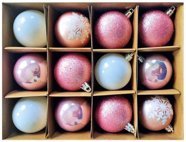 Sada plastových baněk 6 cm, 12 ks v krabičce, světle růžové