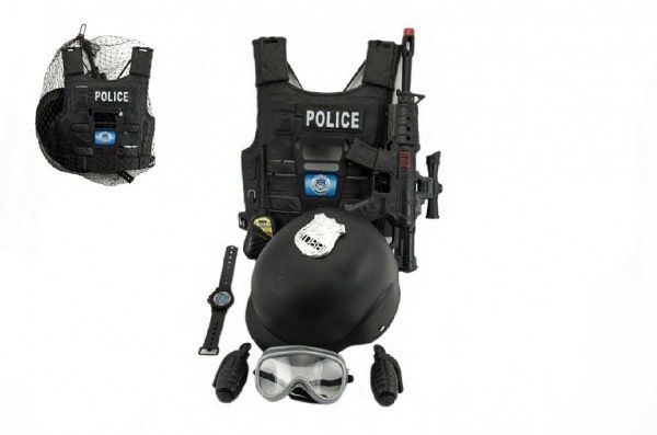 Sada policejní pistole a přilba s doplňky plast 38cm