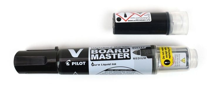Popisovač na bílé tabule s vyměnitelnou náplní s tekutým inkoustem.
