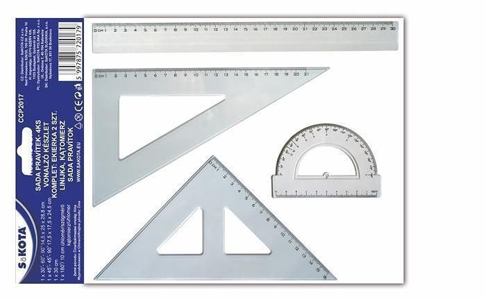 Sada pravítek, plastové, 4 ks, SAKOTA