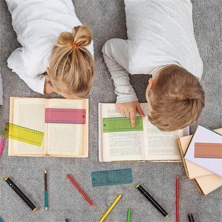 Speciální sada barevných pravítek pro usnadnění psaní a čtení v praktickém uzamykatelném pouzdře.