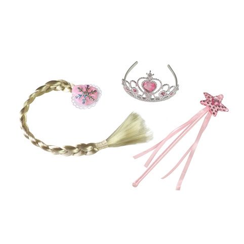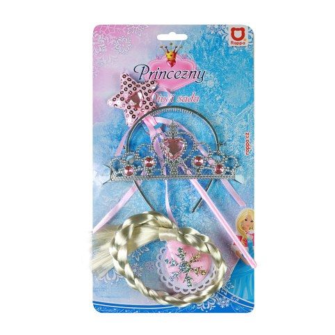 Překrásný set korunky, hůlky a copu pro všechny princezny! Korunka je dekorována ozdobnými kamínky v růžové barvě. Perfektní doplněk ke kostýmu!