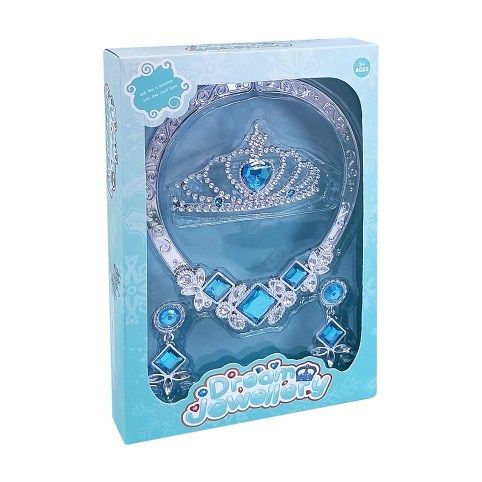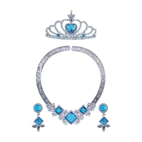 Elegantní sada doplňků, která promění každou malou slečnu v pohádkovou princeznu! Souprava obsahuje korunku, náhrdelník a náušnice ve stříbrné barvě, zdobené zářivými modrými kamínky.