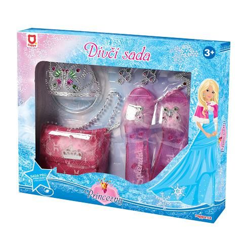 Stát se na chvíli pohádkovou princeznou? Díky této sadě to zvládneš i ty! Set obsahuje střevíčky, kabelku, čelenku s korunkou, náušnice a hůlku. Velikost střevíčků je cca 19 cm. Doporučeno pro děvčata od 3 let.