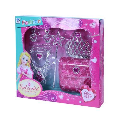 Exkluzivní sada pro všechny malé princezny! Krásná korunka s náušnicemi, náhrdelníkem, hůlkou a kabelkou. Doplňky jsou zdobeny růžovými prvky. Perfektní sada ke kostýmu! Doporučeno pro děvčata od 3 let.