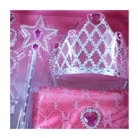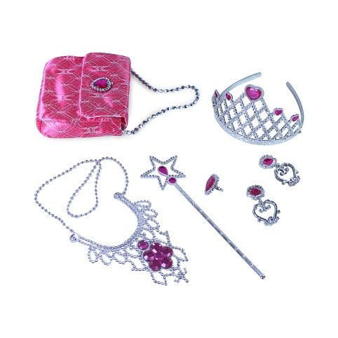 Exkluzivní sada pro všechny malé princezny! Krásná korunka s náušnicemi, náhrdelníkem, hůlkou a kabelkou. Doplňky jsou zdobeny růžovými prvky. Perfektní sada ke kostýmu! Doporučeno pro děvčata od 3 let.