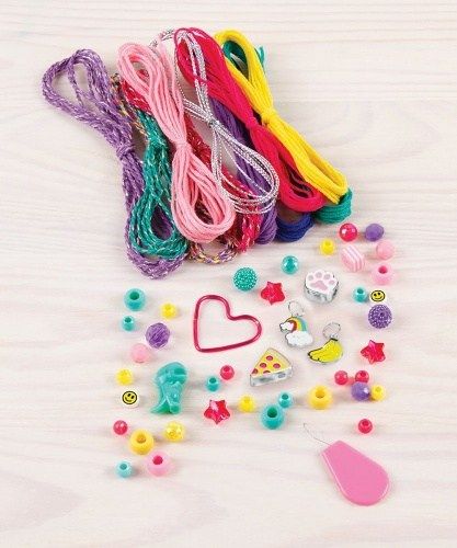 Sada obsahuje 7 barevných bavlnek (20 m), stříbrný metalický provázek (1,5 m), 3 barevné provázky (6 m), korálky, přívěsky a instrukce. Vhodné od 8 let.