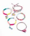 Sada obsahuje 480 barevných korálků, 35 stříbrných korálků, elastickou šňůru (2 m), metalické kroužky, 6 barevných bavlnek (2 m), přívěsky a instrukce. Vhodné od 8 let.