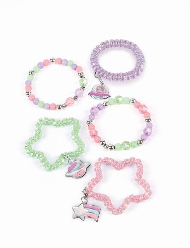 Sada obsahuje 2 spirály ve tvaru hvězdy, 1 kulatou spirálu, elastickou šňůru (1 m), korálky, přívěsky a instrukce. Vhodné od 8 let.