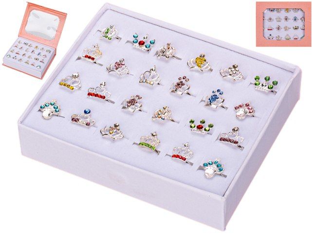 Sada prstýnků ve tvaru korunky 24ks kov v krabičce 14x12cm v sáčku