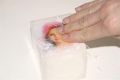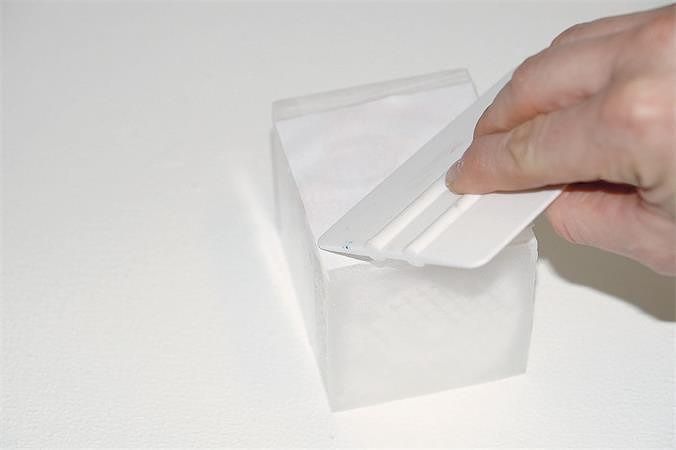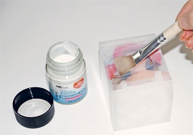Návod: Vytiskněte nebo okopírujte Vaši originální fotografii na laserové tiskárně. Poté položte fotografii na podklad a naznačte její obrysy. Natřete lepidlem čelní stranu fotografie a dále natřete lepidlem vyznačenou plochu na podkladu souvislou vrstvou. Pracujte rychle! Vezměte natřený obrázek a čelní stranou dolů ho umístěte do obrysu vyznačeného na podkladu "mokré na mokré". Rovnoměrně přitlačte. Přebytky lepidla po okrajích obrázku ihned odstraňte hadříkem. Obrázek důkladně vysušte fénem, nechejte úplně vychladnout. Další možností je sušit 24 hodin při pokojové teplotě. Papírovou vrstvu navlhčete kuchyňskou houbičkou a vyčkejte, dokud papír nezměkne. Nyní papír vydrolte prsty nebo opatrně hrubou stranou houbičky. Zůstane jen voděodolný Potch s přeneseným obrázkem. Jemné bílé zbytky papírových vláken zmizí dalším přelakováním buď další vrstvou lepidla, nebo akrylovým lakem.