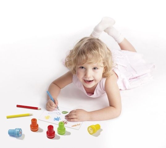 Balení obsahuje: 5 razítek, pastelky a samolepky. Rozvíjí u dětí kreativitu a fantazii.