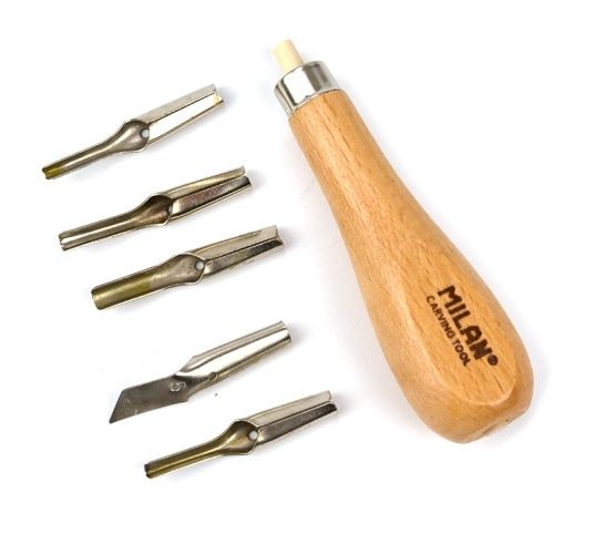 Pokud si chcete vyzkoušet linoryt, určitě k tomu budete potřebovat speciální rydla. Sada obsahuje 5 druhů tvarů a velikostí nástavců a díky dřevěné násadě se vám bude v ruce pohodlně držet. Navíc je na konci držadla dřevěná tyčinka, díky které snadno sundáte nástavce u držadla.