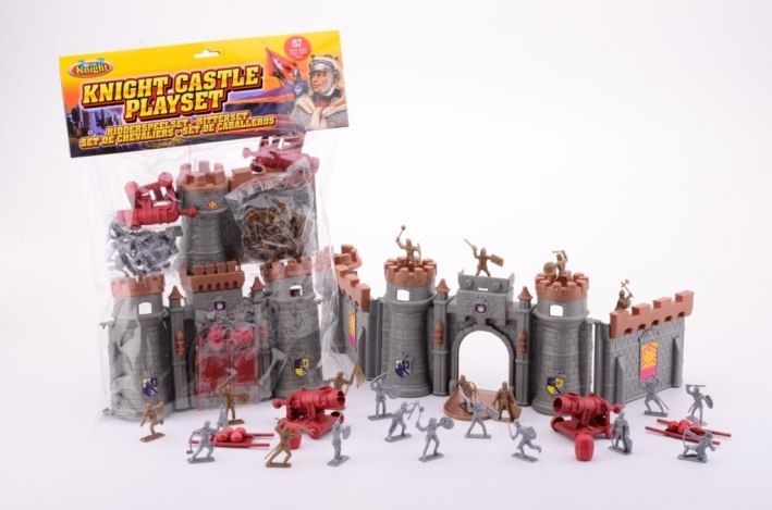 Hrací sada rytíří s hradem. Sada obsahuje – rytíře, rozkládací