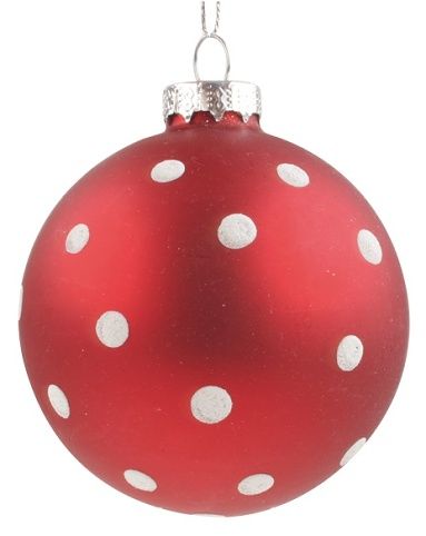 Sada skleněných baněk 8 cm, 4 ks v balení, červené s puntíky