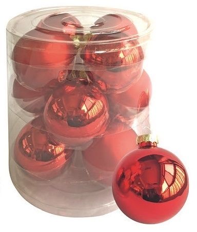 Sada skleněných baněk červených 5,7 cm, 12 ks