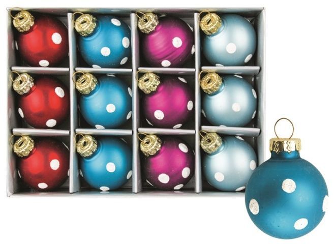 Sada skleněných baněk s puntíkem 3cm, 12ks